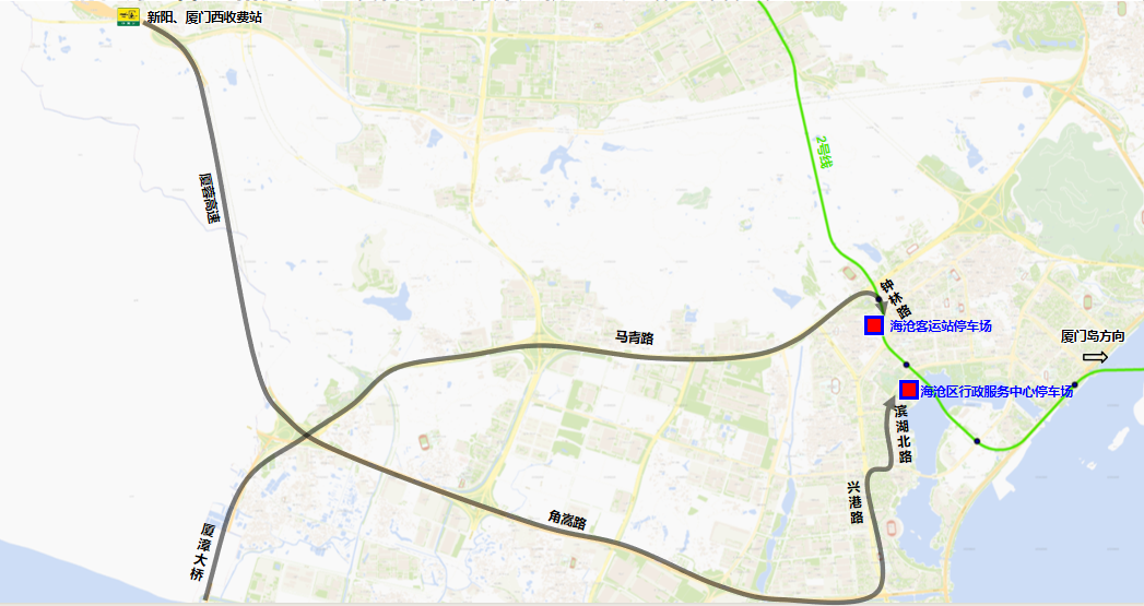 前往海沧客运站停车场:厦蓉高速/厦漳大桥→马青路→钟林路→海沧客运站停车场