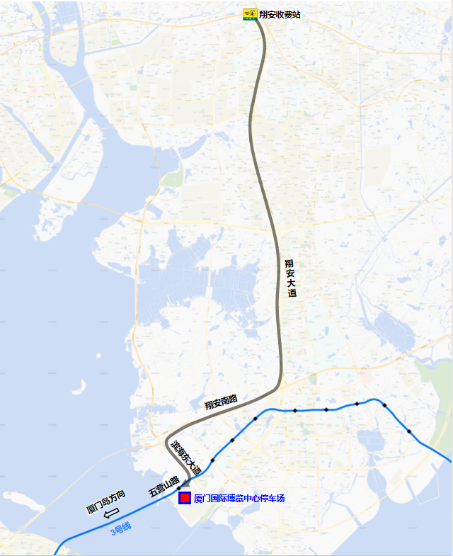 驾驶路线:翔安收费站→翔安大道→翔安南路→滨海东大道→五营山路→厦门国际博览中心停车场