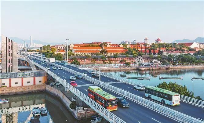 厦门公交集团不断提升公交出行的便捷性、舒适度和体验感。图为平稳行驶在厦门大桥上的公交车。(厦门日报记者 林铭鸿 摄)