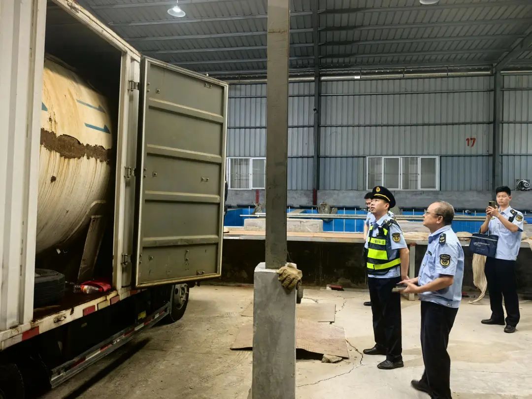 为了加强辖区危险化学品的安全管理,保障人民群众生命财产安全,8月8日15时,市交通局执法支队、集美区市场监管、应急管理、公安等部门工作人员前往杏滨路厦门某商贸有限公司厂区开展联合检查行动。