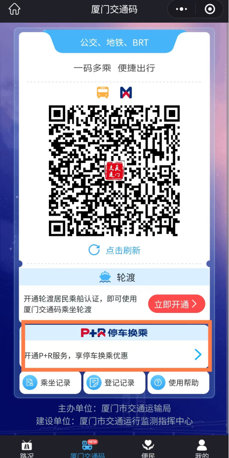 微信搜索“厦门交通”或扫描下方二维码,打开小程序。