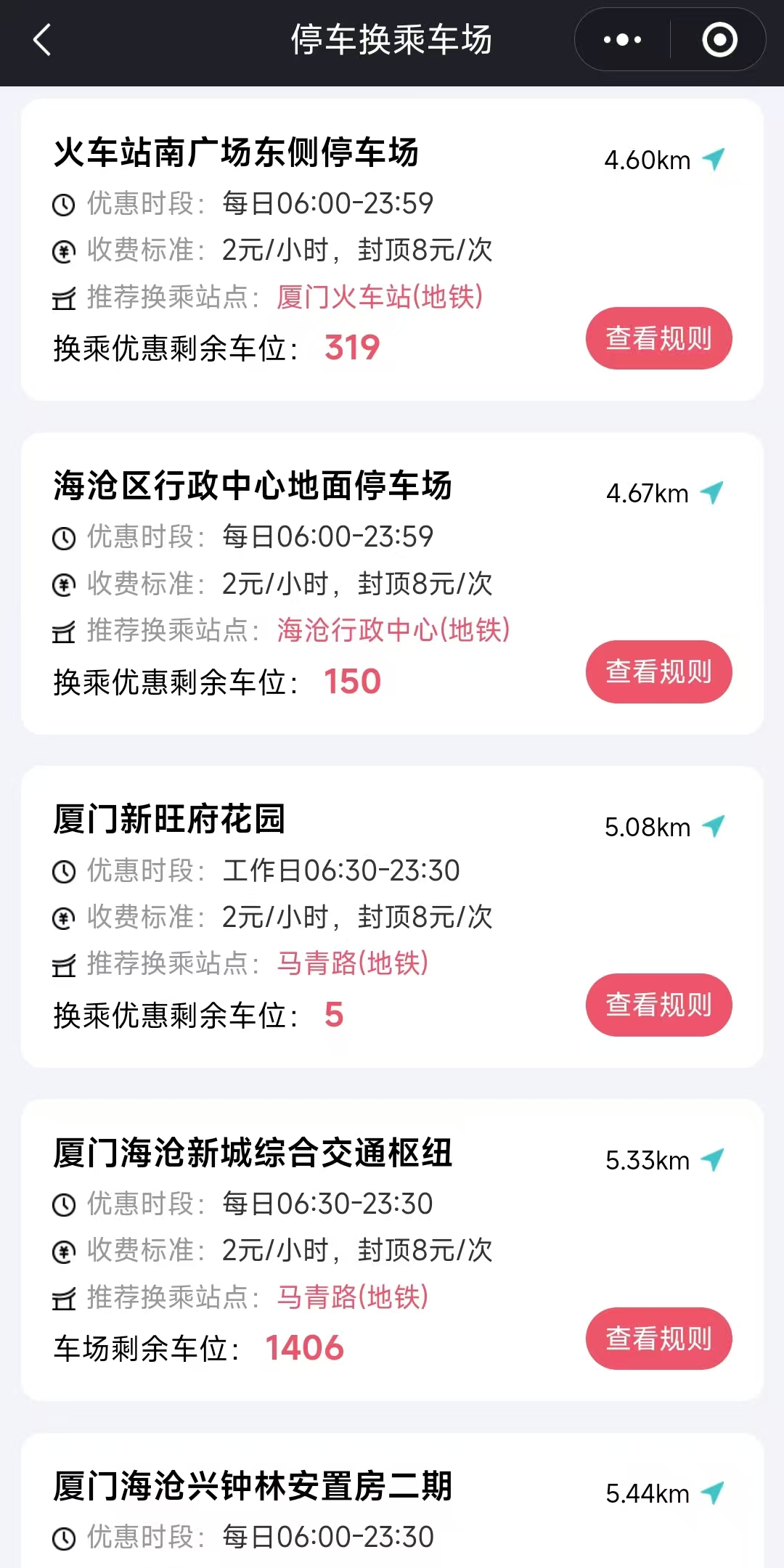 目前,厦门“P+R”停车场已覆盖岛内外41个地铁/BRT车站,提供63个停车场、共计7801个车位,累计换乘量约45万车次。
