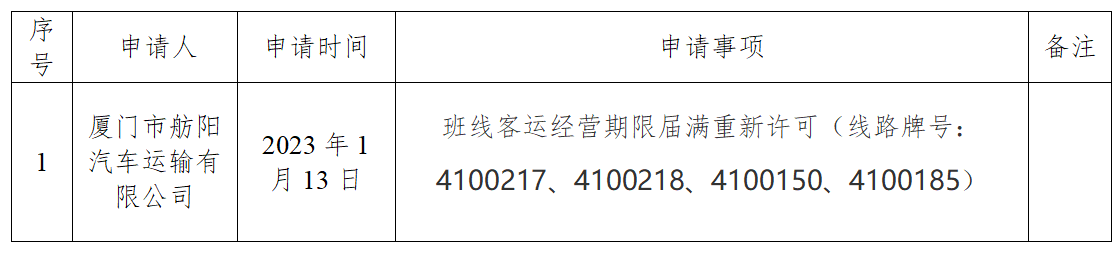 经审查,上述申请事项属于本机构职责范围,申请材料符合法定的要求和形式,根据《中华人民共和国行政许可法》第三十二条的规定,决定予以受理并公示(详见下表),期限自2023年1月13日起至2023年1月17日。如有异议,请在公示期内向我局递交书面材料。